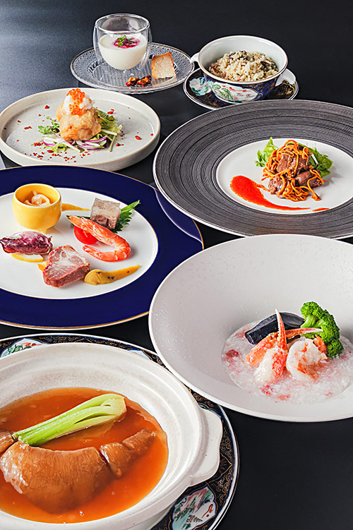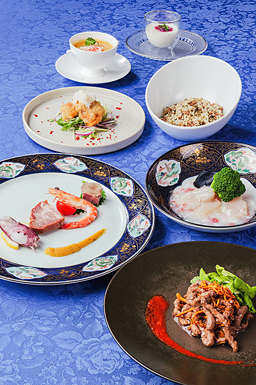 フカヒレスープ、牛肉と夏草花の四川風炒めなどが