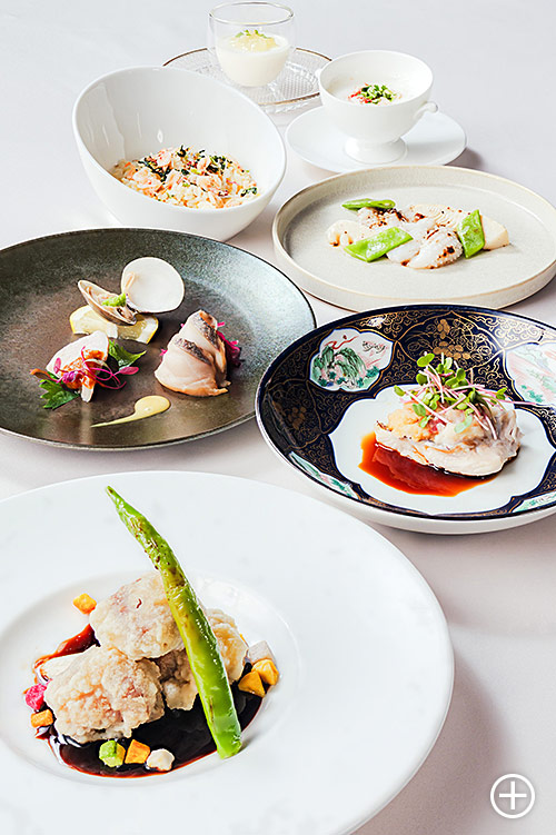 フカヒレの姿煮込み、真鯛と蟹肉の蒸し物