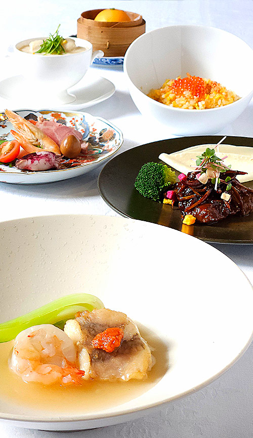 鮟鱇と大根餅の中華蒸し 香味醬油掛け