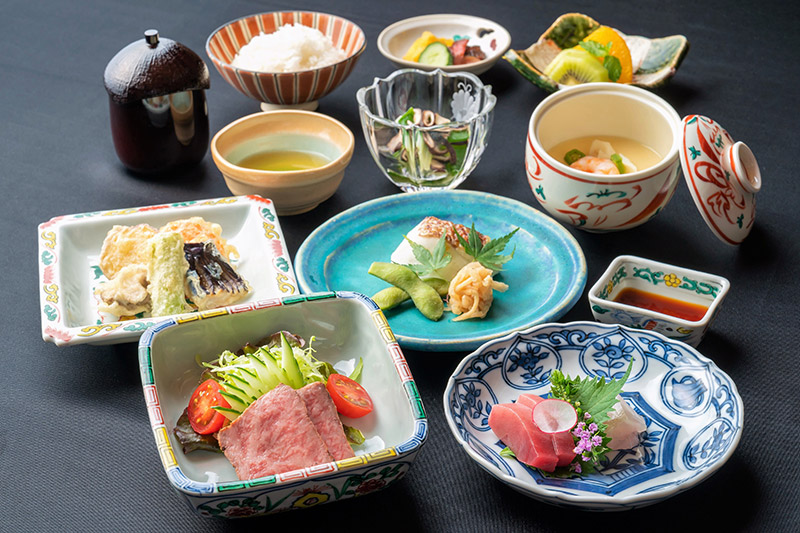 | 先 付・季節の小鉢 お造り・季節のお造り2種盛り 温 物・茶碗蒸し 焼き物・季節の焼き魚 揚げ物・野菜天婦羅 合い肴・和牛網焼き 生野菜 食 事・白米 香の物 留め椀 水 物・季節のデザート |